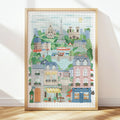 En esta ilustración nos muestra París en todo su esplendor: la emblemática Torre Eiffel, Notre-Dame, el Sacré-Cœur, la ribera del Sena y el Louvre. También encontrarás un café y una boulangerie típicamente parisinos que completan la escena con ese aire romántico tan característico. Una paleta rica y luminosa que invita a disfrutar cada detalle.