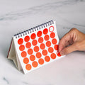 Incluye página de adhesivos redondos rojos, para que puedas marcar festivos locales o fechas personales.